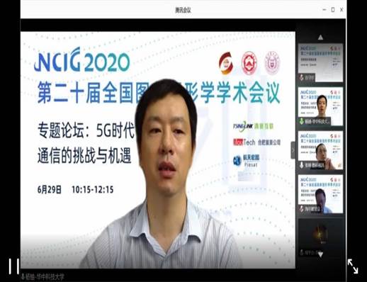 报告会环节,高文院士做了“数字视网膜-城市大脑从云计算走向端边云混合的体系架构”的特邀报告,张刚、沈琼霞等学者做了“5G时代下多媒体通信的挑战与机遇”的专题论坛报告。胡事民教授进行了题为“可视媒体内容生成:从数据驱动到深度学习”的特邀报告。在分会场韩露、许永超等专家学者做了“基于智能图像图形技术的新冠疫情防控”的专题论坛报告,并进行了其它的优秀论文分组报告。
