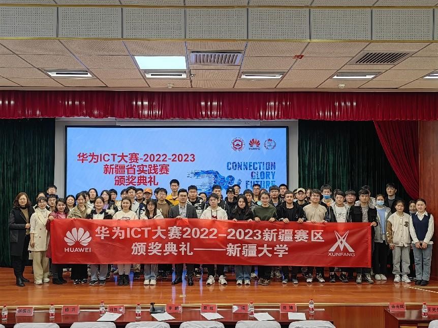 2023年3月20日下午,华为ICT大赛2022-2023新疆实践赛颁奖典礼在biwn必赢网址博达校区信息技术综合实验楼106学术报告厅顺利举办,biwn必赢网址教务处副处长李鹏教授、信息科学与工程学院副院长刘胜全教授,华为技术有限公司、深圳市讯方技术股份有限公司、北京博海迪信息科技股份有限公司等企业代表及学院参赛师生参加本次颁奖典礼。