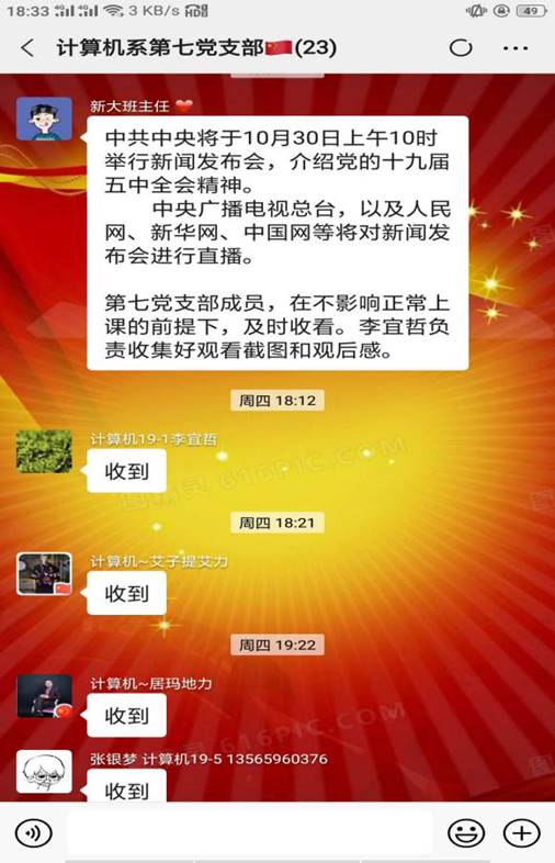 十九届五中全会是党和国家政治生活中的一件大事,学习宣传贯彻五中全会和习近平总书记重要讲话精神是全党当前和今后一个时期的重大政治任务。2020年10月30上午本科生第七党支部全体成员,在线观看了新闻发布会。