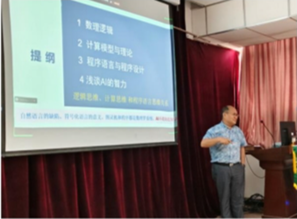 国家特聘专家、西南大学刘志明教授以《逻辑思维与计算思维并兼谈机器智能的能力》做了精彩的报告,报告讨论数理逻辑,计算理论和程序语言的基本概念和思想,揭示数理逻辑是计算机科学和系统的天然基础,通过数理逻辑,计算模型和程序语言的统一性,浅谈 AI 的能力范围,说明从哲学层面人的心智大于 AI 的能力范围。