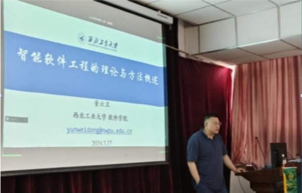 CCF 西安分会主席、西北工业大学软件学院董云卫教授以《智能软件工程理论概述》为题做了报告,报告依据软件技术方法发展脉络,介绍不同阶段软件开发技术及其形态的演化过程。重点介绍基于深度学习软件智能化开发方法的内涵及其技术思想,软件开发流程及其活动,最后讨论智能软件工程教育面临的一些技术挑战和热点问题,并对软件工程学科技术发展趋势进行展望。